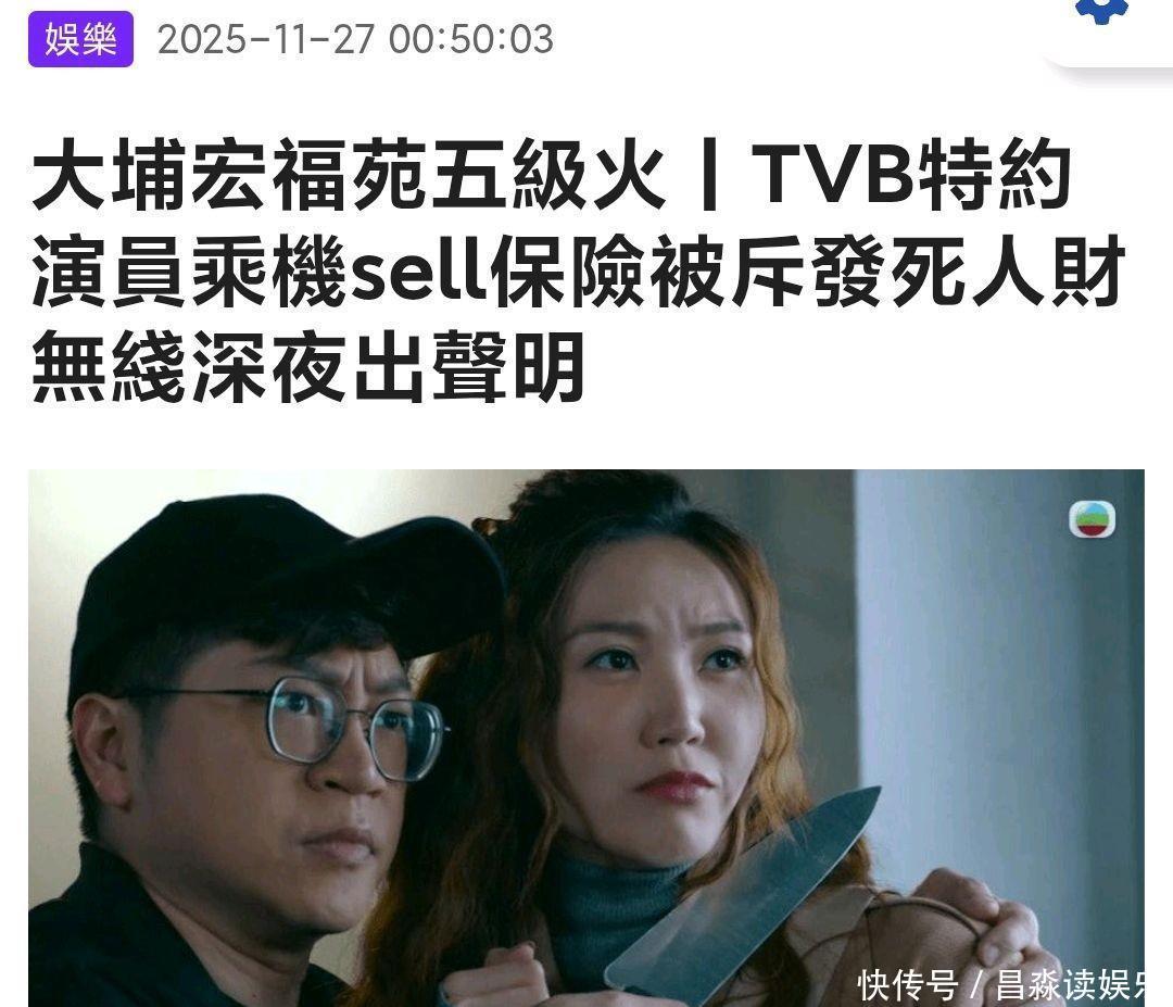 11日,香港大埔发生火灾,许多市民对此(火灾)感到悲痛并祈愿伤亡降到最低,但在这个时候,却有当地网红和部分媒体称,一位名叫林子幸的前TVB艺人趁火灾推销保险,引发舆论广泛关注,TVB亦因此遭到大量攻击。27日凌晨,TVB企业传讯部发表严正声明。